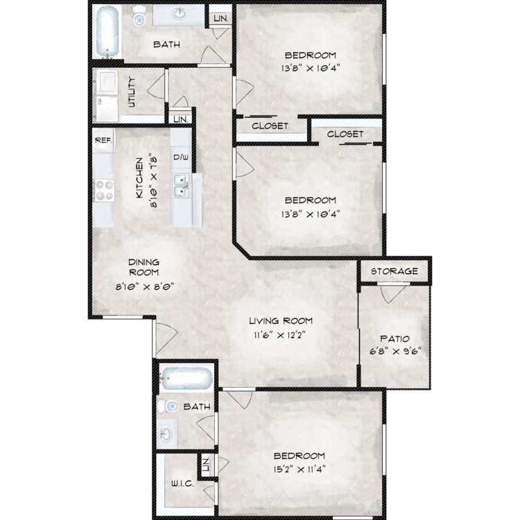 We offer affordable two and three-bedroom apartments for rent with the amenities you desire. Each residence features central air and heating, ceiling fans, a washer and dryer, and some paid utilities. We also have an all-electric kitchen with a dishwasher, microwave, and refrigerator. A balcony or patio will increase your living space and provide a relaxing spot to unwind.